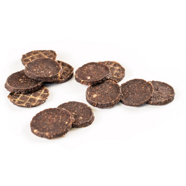 This snack is made from minced lean meat from Hokkaido game deer, Ezo deer, which is then formed into chips and dried.